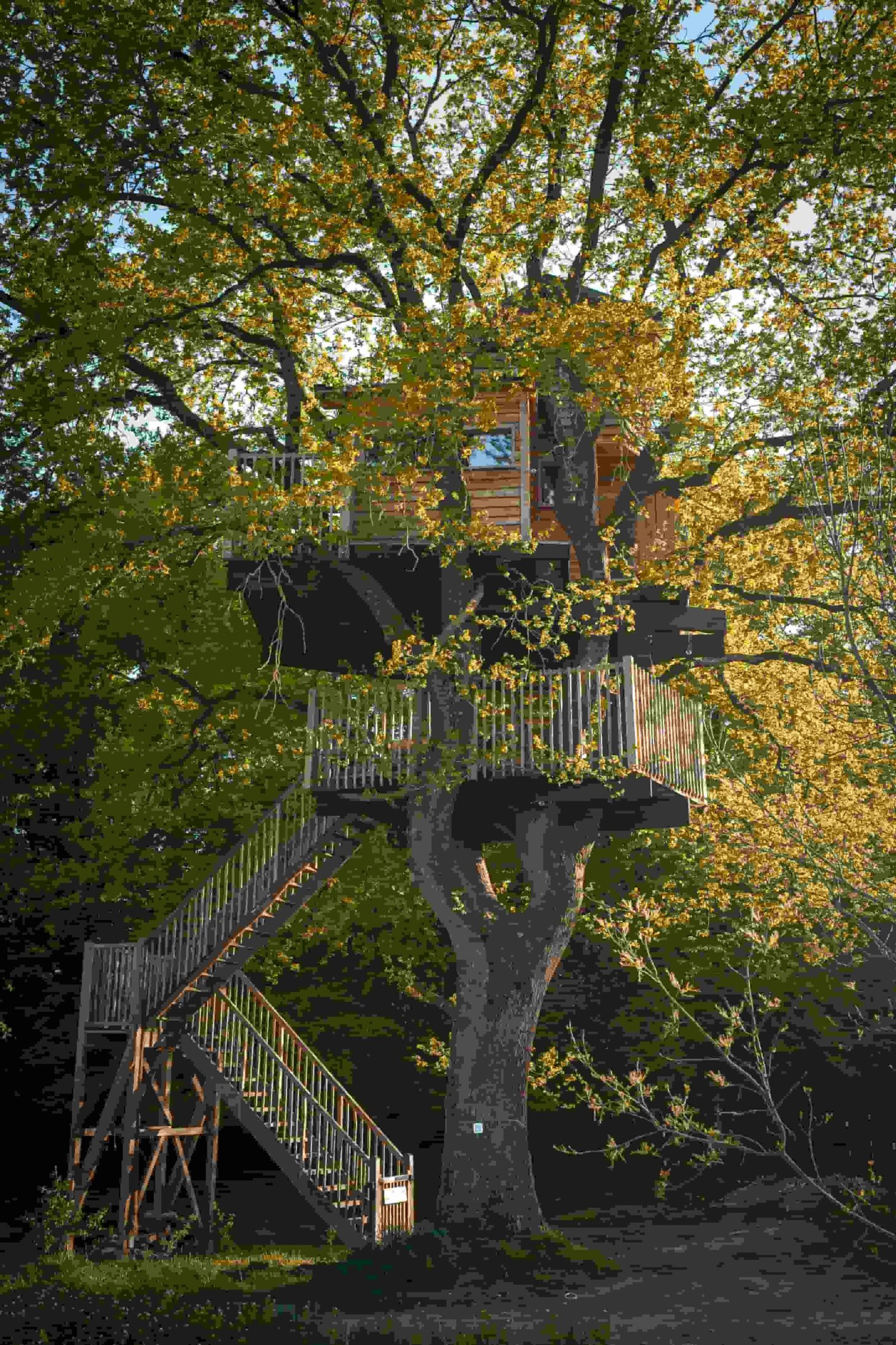 Ontdek de Cabane du Chêne - een oase van rust op 7 meter hoogte in het bladerdak van een majestueuze eik. Gelegen in het hart van het landgoed, biedt het een adembenemend panoramisch uitzicht over de regio. De hut is verdeeld over twee verdiepingen en heeft een gezellig salon, een knusse slaapkamer en een droog toilet, waar comfort en ontsnapping hand in hand gaan. Profiteer van het grote terras boven op de boom om te ontspannen in de buitenlucht. Onder de boom staat een kleine tuin met een vuurplaats en BBQ tot je beschikking. Boek nu je verblijf in de Cabane du Chêne en geniet van een unieke ervaring in het hart van de natuur.
